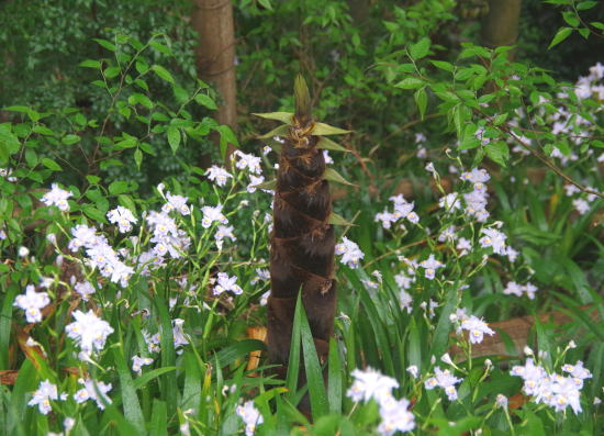 まだいい感じのタケノコもあるけれど、ある人に差し上げようと思って、ちょっとだけ採った。週末に姪っ子一家が採りに来るそうなので、ちょっとだけ顔を出しているようなのは残す。