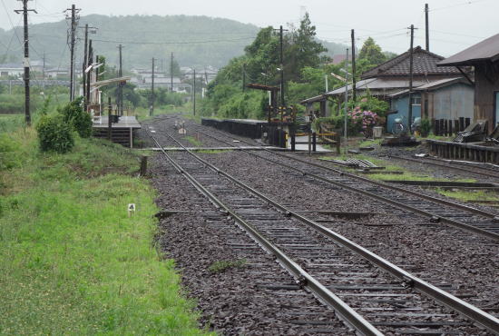 小さな踏切のところから下り方向、海土有木駅を観る。