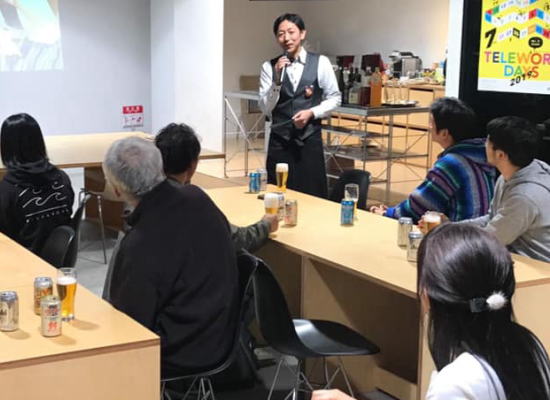 乾杯の音頭はリカーショップ・ウダのマスター。
