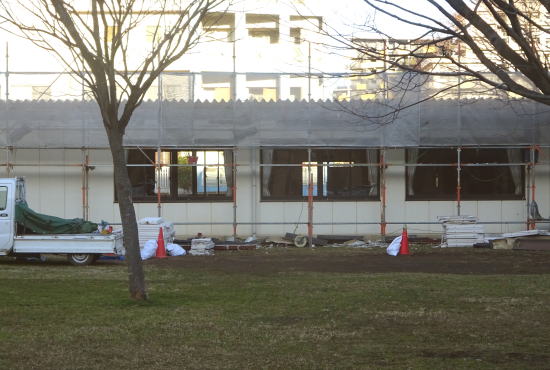 こういう用途に使っているプレハブの建物が改修工事というのは珍しいよね。