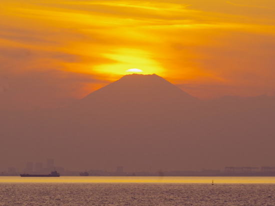 夕刻、雲は多いが薄らと太陽が出ているので、ダイヤモンド富士が期待出来るかなと思い、幕張の浜へ。