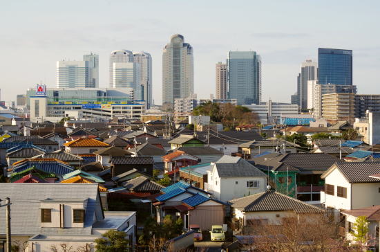 総武線を跨ぐ歩道橋の上から幕張新都心。