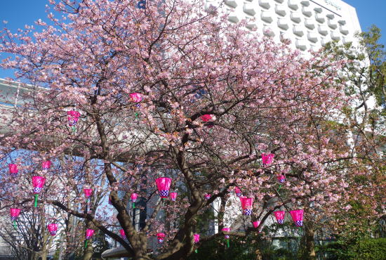 ホテルスプリングスの河津桜が見ごろ。