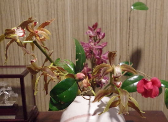 玄関に母が活けた花。