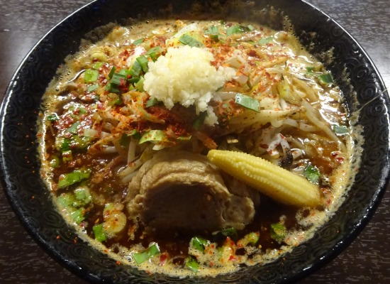 で、たまたま通ったあの鉄骨が崩壊したゴルフ場のところ、その道を挟んだ反対側にあるカラシビラーメンで人気の蠍(サソリ)がいいなと通り過ぎて100mのところでUターンした。