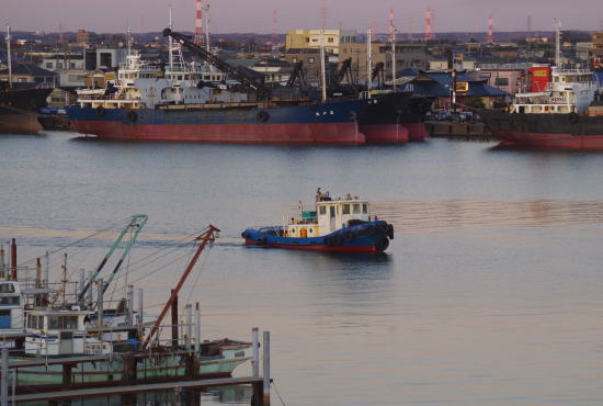 夕闇迫る木更津港。