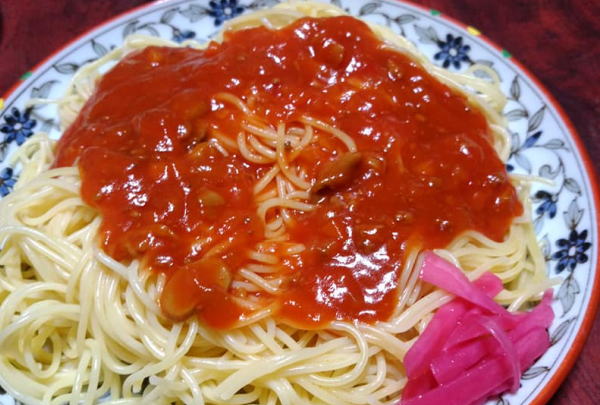 と言っても、レトルトのミートソースが1袋しかなくて、母と半分こ。