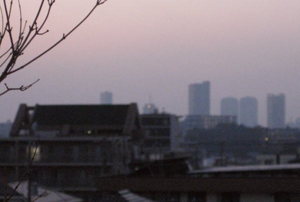 お墓のあるフロア(3階)には庭があって、そこから海浜幕張方面が見える。