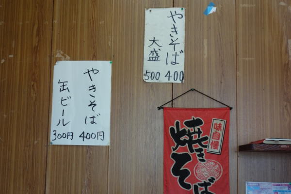 メニューは焼きそばと大盛りと缶ビールだけ。