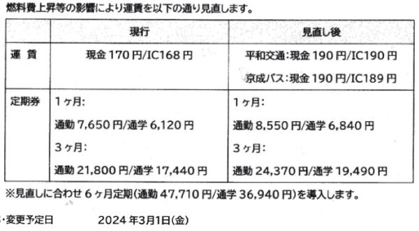 ところで、2月10日の自治会資料を眺めていたら、ベイタウンを走るバスの運賃の値上げのお知らせがあった。
