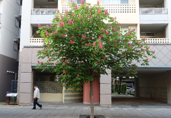 バレンタイン通りのマロニエの木に花が咲き始めている。