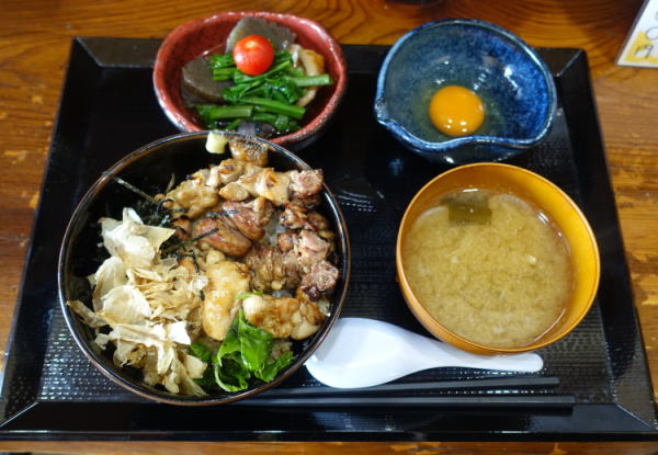 焼鳥丼は1,000だが、プラス200円で小鉢と味噌汁が付くという内容。