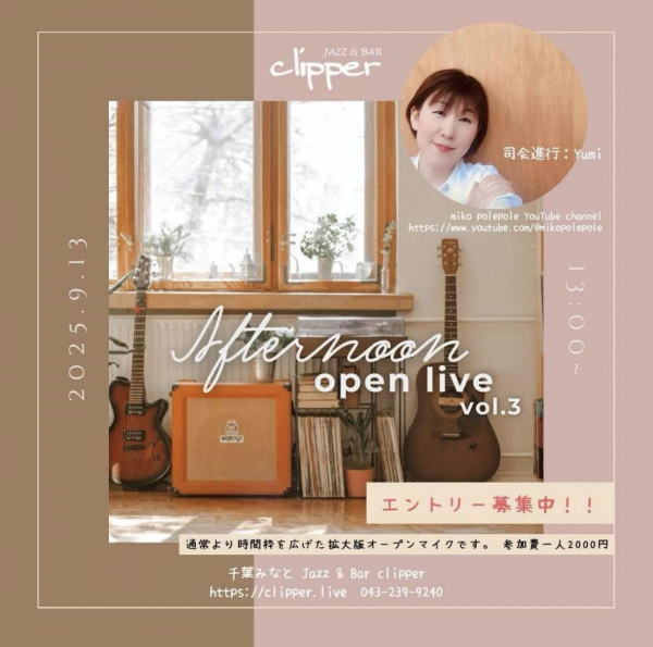 9月13日(土)の「Afternoon live vol.3」にご出演いただく皆さまを今一度ご紹介いたします!!
