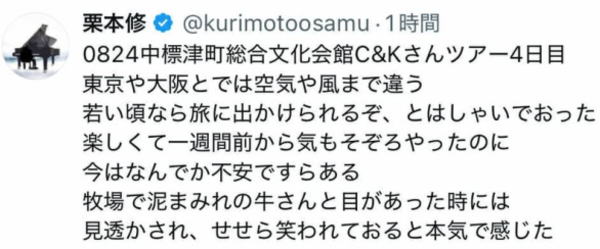 そうか、最近、ちょっとご無沙汰しているけれど、栗本はツアー中だったんだな。
