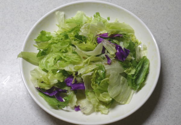 適当にあり合せの食材を組み合わせて、なんとか食べられるものをつくった。