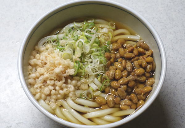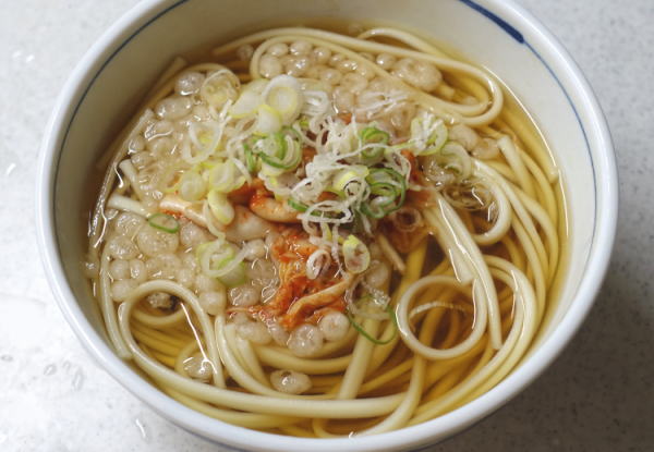 トッピングは白菜キムチに刻み長ネギ、そして天かす。