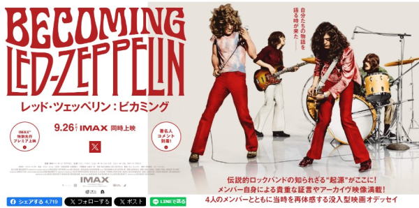 | ほっそとか小野さんが絶賛しているレッド・ツェッペリンの映画。上映が今日までとは知らず。2,900円という各種割引も効かないワタシには高額。でもいいのだ。 |