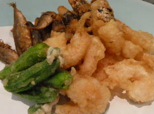 ぷりぷりしたエビ。獅子唐。そして、小魚。