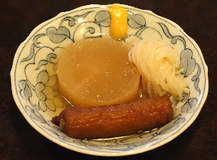だいこんなんてもう浸みすぎていて、ほろほろになっている。つゆは上品。旨いっ。 |