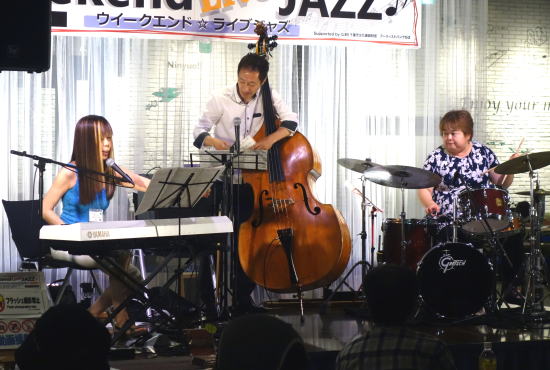 関口宗之(Bass)、赤坂由香利(Vocal&Piano)、野村綾乃(Drum)