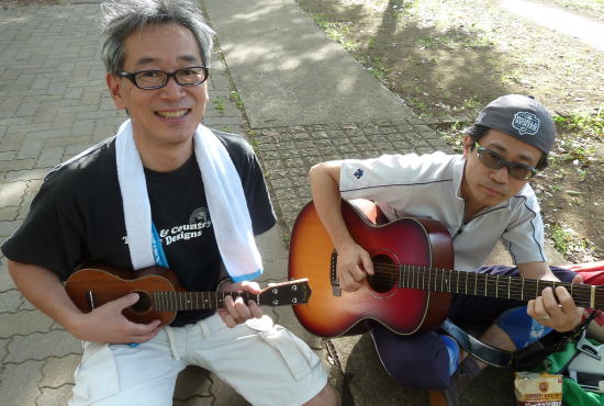 16時過ぎ、木陰でギターとウクレレを持ち合って集合。