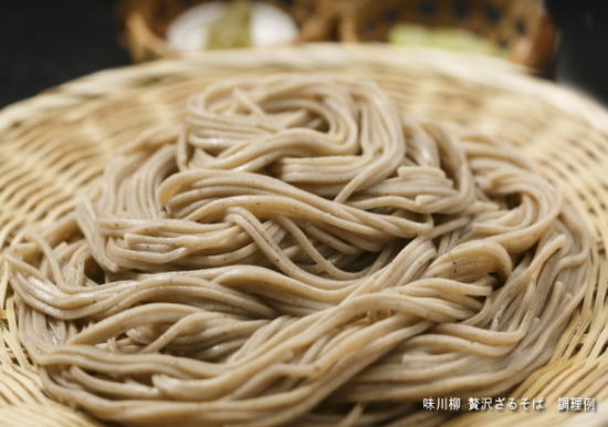 茂野製麺の新商品は、食塩を使わない「そうめん」、「うどん」、石臼挽きの常陸秋そば粉を使った「贅沢ざるそば」の3品。いずれも原料と製法にこだわり、高級そば店で食べるような贅沢な味です。上の写真は「贅沢ざるそば」の調理例。右はパッケージ。是非ご愛顧ください。