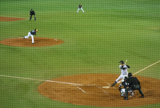 8回裏のマリンズの攻撃が終わった時点で退散。