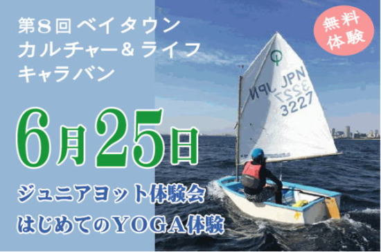 第8回 ベイタウン・カルチャー&ライフ・キャラバンは、ジュニアヨット体験会 & はじめてのYOGA体験です。